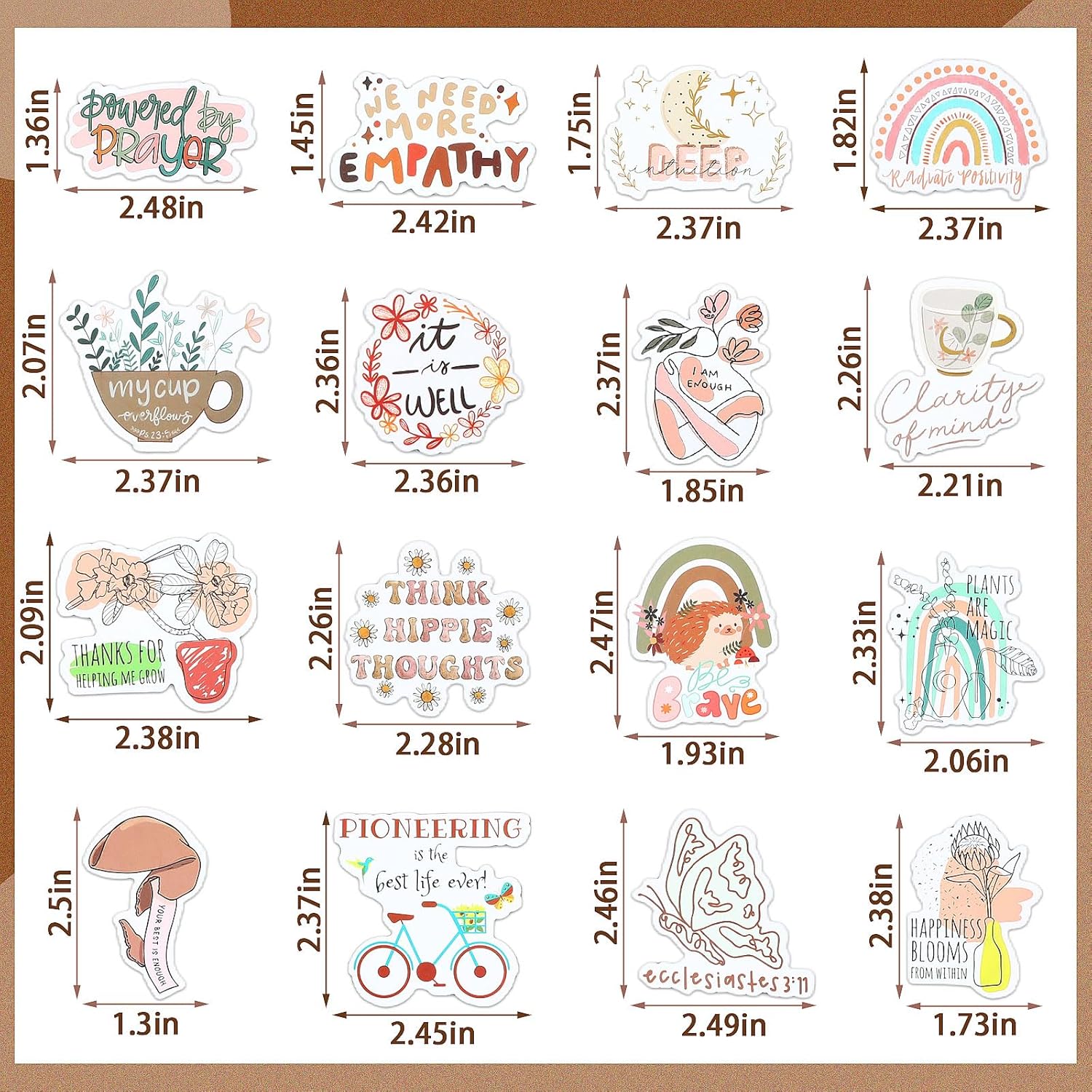 Our Christian stickers are made of premium vinyl material that is not only scratch-proof, but also has wonderful abrasion-proof and weatherproof. In addition, the inspirational Christian stickers come with adhesive back for easy use on any smooth surface. You can use the prayer board bible stickers to decorate everything from laptops, water bottles, phone cases, suitcases, skateboards and more, adding a unique boho style and faith power to your life.
