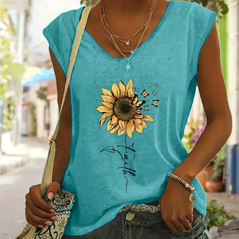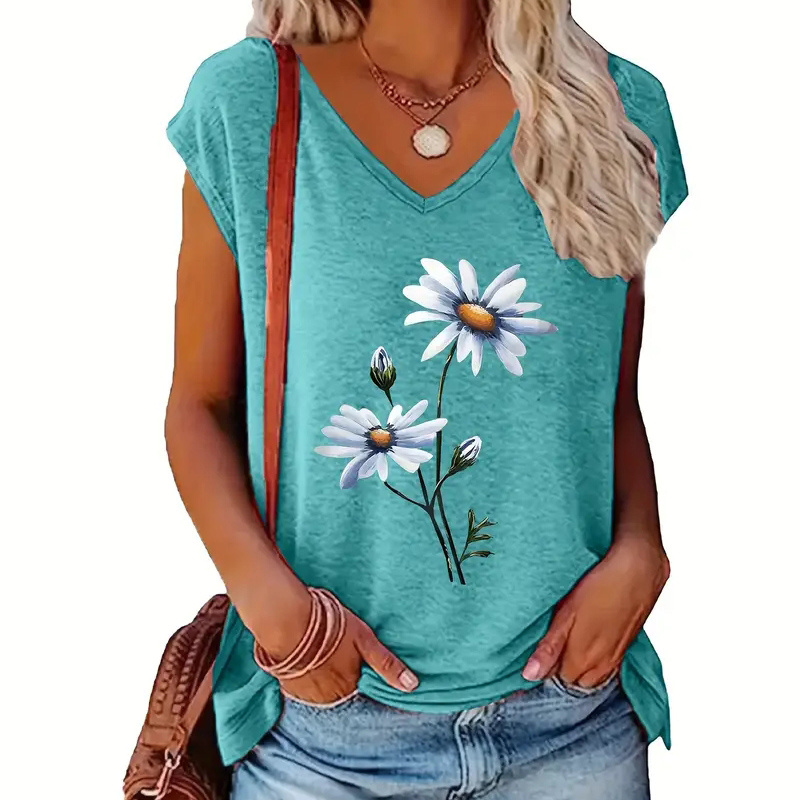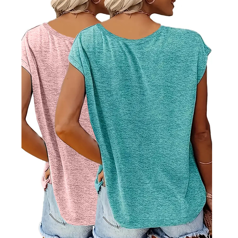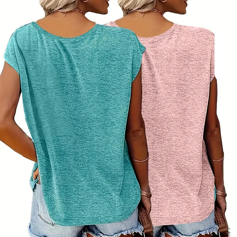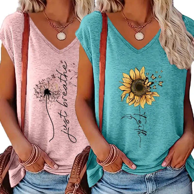 2-Pack Women’s V-Neck Graphic Print Tees – Summer Casual Short Sleeve Tops