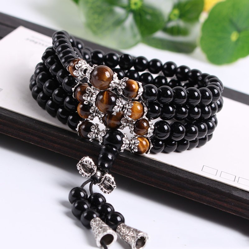 Fatpig Negro Color de Ojo de Tigre Crystal Tíbet Budista Buda Meditación 108 Prayer Bead Mala Pulsera/Collar